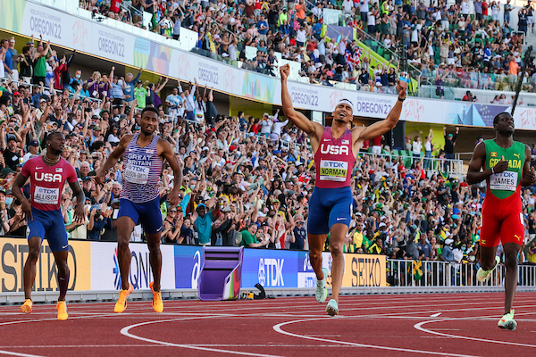 Michael Norman has earned his first ever gold medal on the international stage. The young sprinter attended the University of Southern California and competed at Hayward Field many times throughout his collegiate career but failed to find a place at the top of the podium on the global level.
