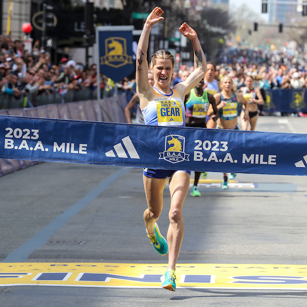 In the women’s race, a power move by the former University of Arkansas star Krissy Gear (HOKA Northern Arizona Elite) yielded her first pro career victory. Gear, 23, who is coached by two-time Olympian Alan Culpepper, blasted around the penultimate turn from Newbury to Exeter to gain the lead, then emerged on Boylston Street with the race already well in hand. Taking no chances, she pushed all the way to the line and broke the tape in 4:40.0, pumping her right fist in the air in triumph.