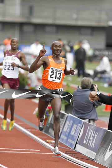 Bernard Lagat, winning the Nike Pre 3,000 meters, June 2009, courtesy of Photorun.net.