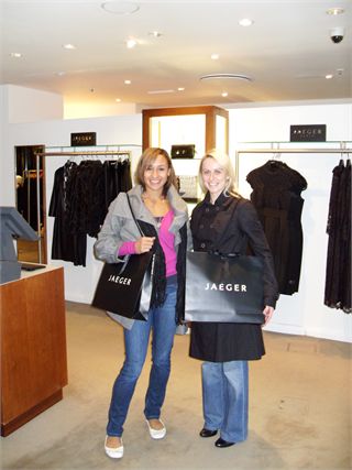 2009 Berlin gold medalist, heptathlon, Jessica Ennis, and 2009 Berlin bronze medalist, 800 meters, Jenny Meadows, shopping at Jaeger Clothing, new four year sponsor of UK Athletics, photo courtesy of