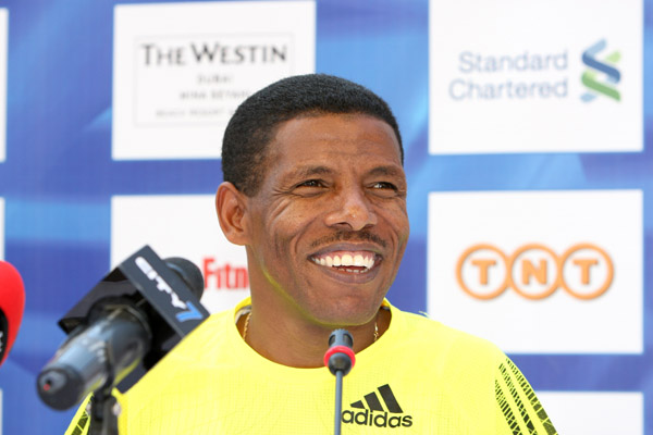 Haile Gebrselassie at the Standard Chartered Dubai Marathon press conference, January 20, 2010, photo by PhotoRun.net.