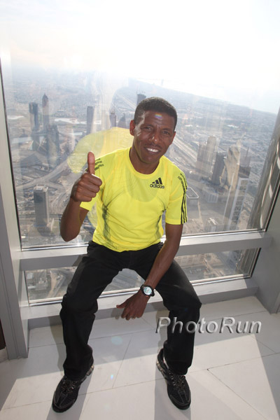So, what does the WR holder in the marathon do after a press conference in Dubai? Well, of course, if he is with Victah Sailer, world famous sport photographer, he joins the CEO of Dubai Holdings, the company sponsoring the $ 1 million WR bonus, and visits the Burj Kalifa, the world’s tallest building! Please read Victah’s observations below: