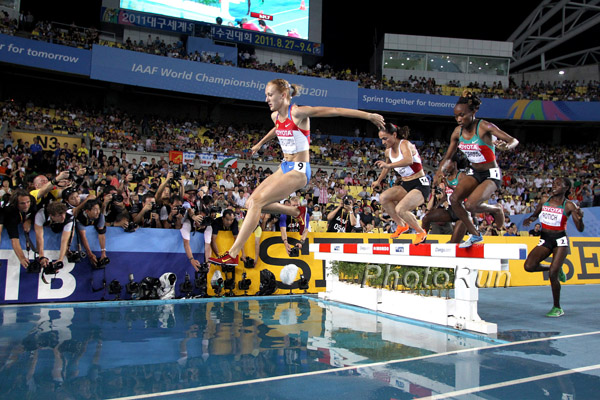 Zaripova leads, 2011 WC steeplechase, photo by PhotoRun.net