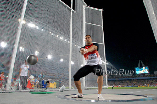 Koji Murofushi, 4/4, photo by PhotoRun.netKrisztian Pars of Hungary just missed taking over the gold medal, with his last effort of 81.18 meters, the first time since 2008 that two men have thrown over 80 meters in the same competition. His series was 77.26m, 78.84m, 79.14m, 79.97m, 60.34m, 81.18m.