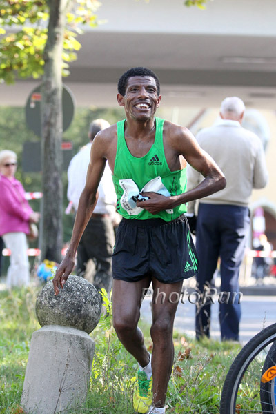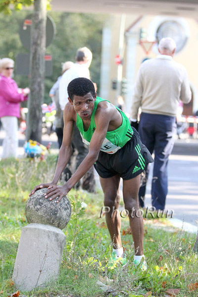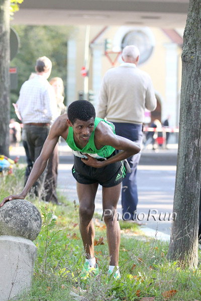 Haile trying to catch his breath, 2011 BMW Berlin Marathon, photo by PhotoRun.net