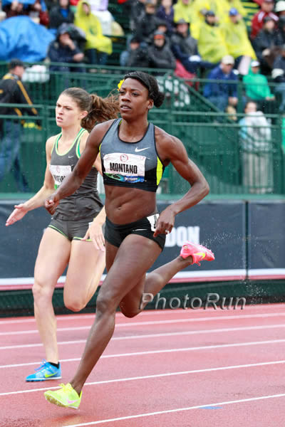 Alysia Montano and Nick Symmonds were the focus of last nights cheers as the 800 meter finals rocked the 21,000 fans in Hayward Field and 6,000 at the Expo. Montano ran from the front, and Symmonds gutted out a 27.06 last 200 meters, both taking wins in races that were polar opposites.