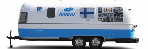 Joe and I death-marched our way to the Karhu rep’s car at 5 and drove through the neon Austin morning to Rogue Running, one of the city’s independently owned specialty running stores. There, Wesley, the departing American Joe was replacing on the Originals Tour, and Jyrki, the token Finn for the trip, had set up the Karhu trailer (referred to herein as an Airstream, since, as the CEO says, a trailer is something that gets hit by a tornado).