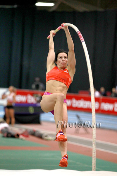 The Olympic heroine had just one earlier meet this winter – clearing 4.63/ 15 – 2/14 in a low key meet at Ohio’s splendid Spire Academy facility.