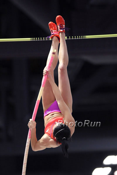 No one has gone higher indoors that Jenn Suhr did, in front of only her closest fans, on Saturday night, 2 March 2013, in Albququerque, New Mexico at the 2013 USA Indoor Champs.