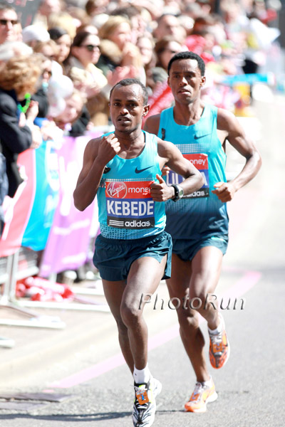 2013 Virgin London Marathon, Men, 1. Tsegaye Kebede, ETH, 2:06.04, 2. Emmanuel Mutai, KEN, 2:06.34, 3.Ayele Abshero, ETH, 2:06.57, 4.Feyisa Lelisa, ETH, 2:07.46, 5.Wilson Kipsang, KEN, 2:07:47, 6.Stephen Kiprotich, Uganda, 2:08.05, 7.Yared Asmeron, ERI, 2:08.22, 8. Stanley Biwott, KEN, 2:08.39, 9. Hafid Chani, MAR, 2:09.11, 10.Ayad Lamdassem, ESP, 2:09.28, #vlm2013