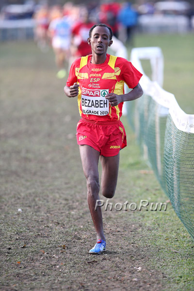 Ultimately at the finish, the margin of victory was 21 seconds. Breaking the tape in 29:11, the 27-year-old Bezabeh earned his second European Cross Country senior title, adding another win to his 2009 victory. In 2011, Bezabeh was suspended for two years for doping, part of the Spanish doping investigation called “Operation Galgo.” He had only returned to competition in February, 2013.