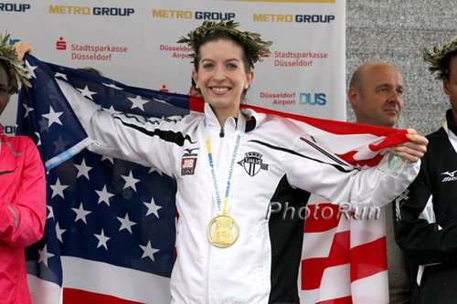 But Kwamboka and Getnet could not keep their pace. Normally the second half of the race in Duesseldorf is considered to be faster than the first half, but not so today. It was before the 30 k mark, when Bersagel overtook Kwamboka. But 31 year-old, who had entered the race with a PB of 2:30:53 from last autumn and more recently showed a fine performance in the World Half Marathon Championships where she finished 13th, did not think about victory at this stage of the race. That changed around 38 k. “It was then, when I suddenly saw the leading car and I realised that I made up ground quickly,” recalled Bersagel. She passed Getnet with around three kilometres to go and became the first US champion in the history of the Metro Group Marathon Duesseldorf.