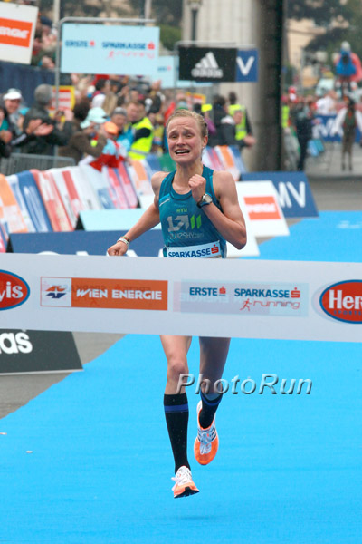 While Chepkwony looked a certain winner the picture suddenly changed. With a few kilometres to go the Kenyan dramatically slowed and Anna Hahner made up ground. But at 40 k there was still a1:24 minute gap between the two. However with 300 metres to go Hahner indeed caught the Kenyan, who could barely run any more. “I am totally overwhelmed and still in dreamland,” said Hahner, who waltzed in the finish are since this year’s motto of the race was “Everybody waltz”. Hahner sealed the first German victory in Vienna since Christa Vahlensiek in 1989.