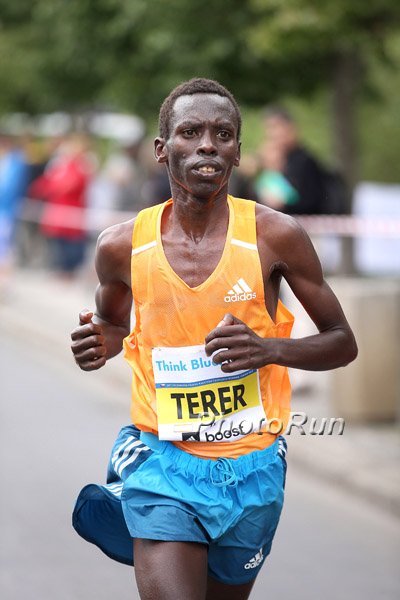 Despite running into a stiff headwind along the Vltava River and into Old Town, Terer maintained strong form right through to the finish, earning his third victory in four career marathons. The 23-year-old, who ran 8:13.96 in the 3000m steeplechase as teenager, won the Turin Marathon in 2012 and 2013 and finished third here last year. Terer earned a €10,000 ($13,746) bonus for breaking 2:08:30.