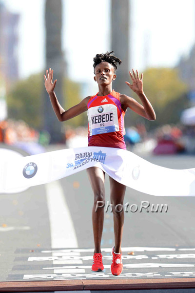 Aberu Kebede finished the race as she had run, with a grimace, in 2:22.21. Sharon Cherop was second in 2:23:44 and Ashete Bekere was third in 2:24.59, a personal best by nearly four minutes.