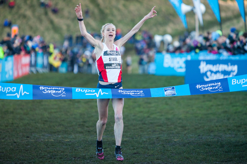 Amid a packed event that saw many of the country’s leading track stars dip their toes into the muddy challenge, it was Steel, the road and XC expert who triumphed. Having placed herself comfortably within the lead pack, as the likes of Gorecka, Steph Twell and Charlotte Purdue, took it in turns to take on the front position for most of the race, Steel went for it with 5 minutes and half a lap to go. Replicating the strength that she has been displaying in most of her recent races, the Charnwood AC athlete stretched away from her opponents and didn’t look back, taking victory by 11 seconds to win the event for the second consecutive year, leaving Gorecka, Rhonna Aukland and Lily Partridge to battle it out for the remaining places within the top three.