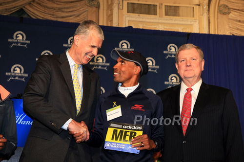 Tom Grilk, Executive Director, Boston Athletic Association, Meb Keflezighi, Jim Gallagher, Chief Administrative Officer, John Hancock, photo by PhotoRun.net
