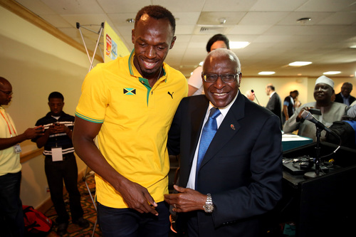 It ended just before I got there. Usain along with his entourage was walking down the stairs and some young girls were there taking his picture as he walked by. They got a real kick out of it. At least I met up with my media friends and got the low down on what was happening for the meet. We got our press credentials to cover the meet.