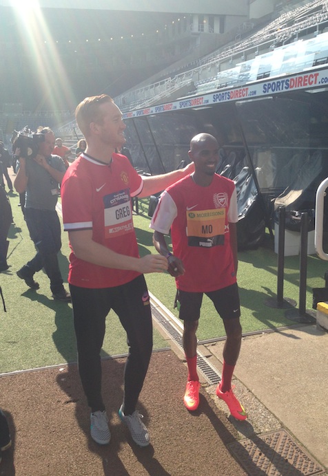 Greg Rutherford, Mo Farah, Newcastle United football pitch, photo by Larry Eder