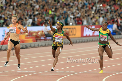 Shelly-Ann Fraser-Pryce, with Dafne Schippers, VCB, in Beijing, August 2015, photo by PhotoRun.net