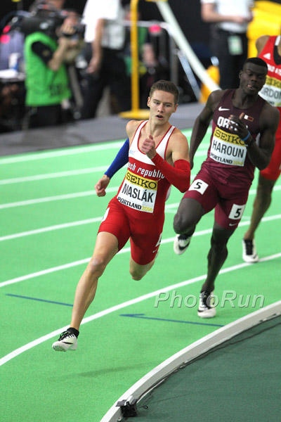 M400m: Maslak became third to successfully defend M400m title at World Indoor Champs after US Antonio McKay and Alleyne Francique of Grenada. 20.89 by Taplin for first 200m is the second fastest 200m split.