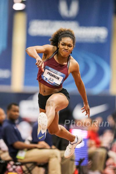 Ex-Michigan Stater Tori Franklin led the women triple jumpers, hop-stepping-jumping 45-5 ¾ to score a decisive win over Baylor grad Danylle Kurywchak, who tripled out at 44-0.