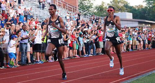 PHOTO: Dejen Gebremeskel and Hagos Gebrhiwet of Ethiopia competing at the 5000m at the first adidas Boost Games in Somerville, Mass., on June 17, 2016 (photo by Chris Lotsbom for Race Results Weekly)