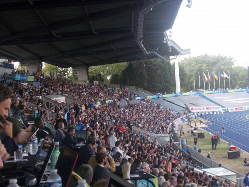 The event was well run – apart from the trigger happy starter. The stadium was just the right size for the event and produced a great atmosphere. While individual performances were important, the fact that it was a team event gave it an extra dimension, with athletes talking about wanting to get points for their country. It also meant that every place mattered which led to sprint finishes – not for victory but for an extra point. And the team score which was updated promptly on the scoreboard was easy for everyone to understand.