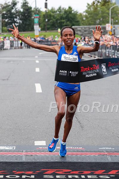 - Meseret Defar places first in the women’s half marathon