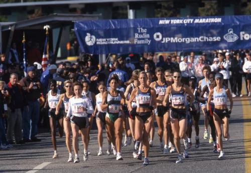 Through 2001, New York featured a mixed mass start, sending off the elite women simultaneous with the top men and the hordes of rank and file runners. While that format frequently helped the leading women clock impressive times, it often came at the expense of visibility and even fair play. “What was happening is that we couldn’t see the women in the TV show because inevitably fast guys who weren’t going to win the race would be running all around them and it was easy for them to get lost,” says Mary Wittenberg, who was executive vice president of New York Road Runners, the race organizers, at the time (she later served as president and CEO from 2005-2015 and is currently the global CEO of Richard Branson’s Virgin Sport).