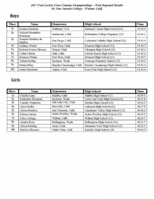 New Balance is in it’s second year of sponsorship, and they actually act like they love being the sponsor and treat the kids like they are the finest athletes in the universe. This is life changing for the young athletes, and the top ten boys an girls who will come to San Diego on December 9, 2017 to race the 40 best boys and girls from the 4 Foot Locker regionals will never forget that experience.
