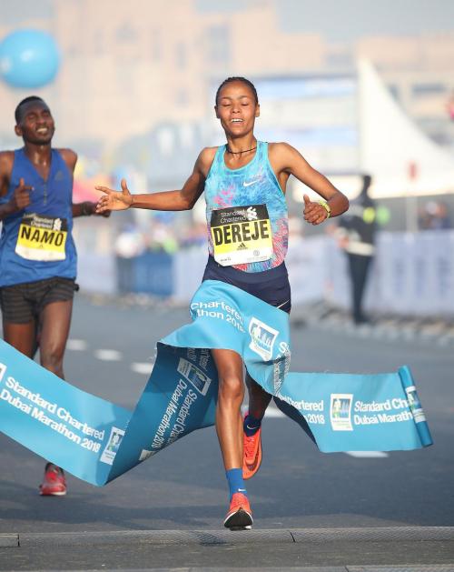Roza Dereje wins 2018 Standard Chartered Dubai Marathon, photo by Dubai Marathon