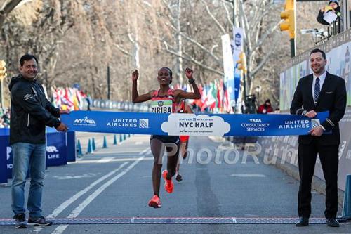 Buze Diriba takes the United NYC Half win, photo by PhotoRun.net