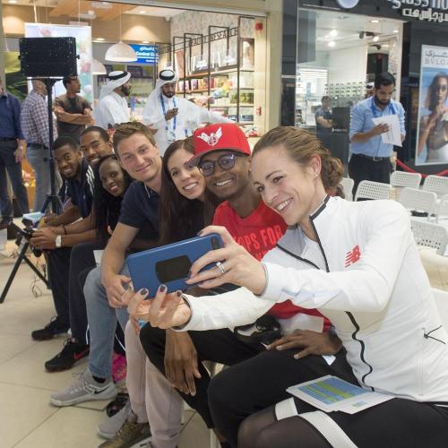 Now that’s a selfie! @NethaneelMB, @Taylored2jump, @hellen_obiri, @thomasroehler, @KatStefanidi, @mutazbarshim and @trackjenny, photo by @stuartweir, @athleticsafrica, @EuroAthletics, @runblogrun, @theshoeaddicts, @euronews, @Diamond_League, @BritAthletics , @usatf,#dohaDL