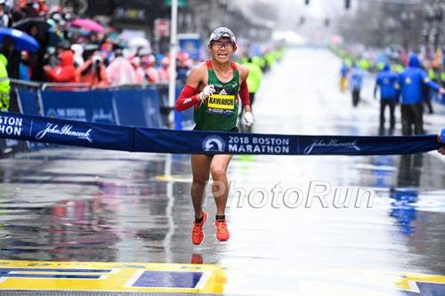 Yuki Kawauchi winning 2018 BAA Boston Marathon, photo by PhotoRun.net