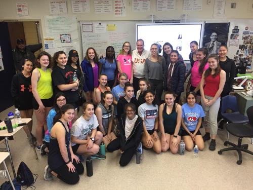 Craig Virgin with the Girls Track team of New Dorp High School, photo by Jeff Benjamin, Staten Island