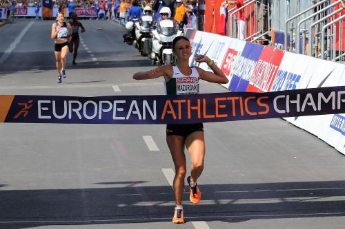BERLIN (12-Aug) — Volha Mazuronak of Belarus and Koen Naert were crowned European marathon champions here on the streets of Berlin this morning on the final day of the 24th European Athletics Championships. Under bright skies with start-time temperatures a moderate 16C/60F, Mazuronak, 29, became the first ever Belorussian woman to win a continental title, clocking the third fastest winning time in the history of these championships: 2:26:22. Naert, 28, became the first Belgian winner since Karel Lismont in Helsinki 47 years ago. Naert ran a personal best time and championships record of 2:09:51. There were no repeat medalists from the 2014 edition of these championships in Zürich.