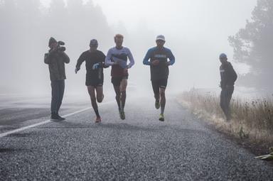 Run in the fog, photo by HOKA ONE ONE NAZ Elite