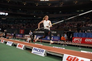Steve Hooker, in the men’s pole vault. Steve is relaxed, fit and ready to fly. I am predicting a new world indoor record in the men’s pole vault. If Mr. Hooker gets that record, I think he should a) take the accolades, b) cash the check and c) fly home and get some rest. Mr. Bubka’s record is in jeapordy.