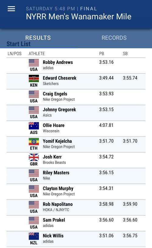 But, for the weekend, at the NB Armory Center, all eyes will be on the Wanamaker Millrrose mile and Yomif Kejelcha, which is just what Nick Willis and Craig Engels, among others hope for!
