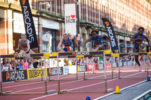 100m hurdles, Manchester Great CityGames, photo by Great Run Company