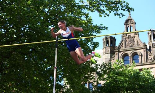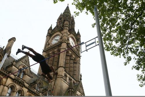 Vaulting in the center of Manchester, Manchester Great CityGames, photo by Great Run Company
