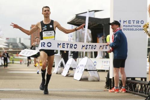 Tom Gröschel and Anja Scherl are the winners of the Metro Marathon Düsseldorf. It is the first time in the history of the event that there are two national winners. Both also took the German Championship as this was included in the race. Tom Gröschel clocked 2:13:49 in cloudy but dry weather conditions, which is a fine personal best and the fastest time by a German this year. In a close finish New Zealand’s Malcom Hicks was second in 2:13:51, just two seconds behind the winner. Denmark’s Thijs Nijhuis took third place with 2:14:18.