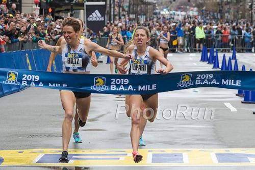 Nicki Hiltz battles Emily Lipari in BAA Invite Mile, photo by PhotoRun.net