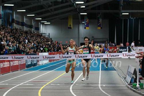 Donavan Brazier and Clayton Murphy battled to the very end of the meet, and the crowd went mad! Both Brazier and Murphy are being coached by Peter Julian of the Nike Oregon Project. Donovan has been training with Nike OP since the fall. Two of the top American 800 meter runners battled, with Brazier taking the win, in 1:45.91 and Murphy setting a PB of 1:45.94.