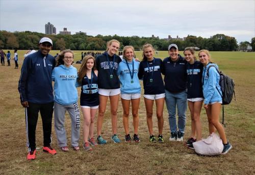 Olympic Gold Medalist Mille Wolde (Left) with the members of the Holy Child HS XC Team At Van Cortlandt Park, photo by Jeff Benjamin