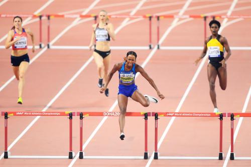 On the way to a WR: Dalilah Muhammed en route to Doha 2019 gold and WR, photo by Getty Images / World Athletics