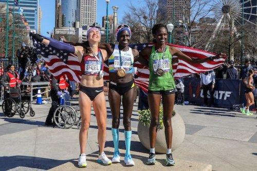 By the time Aliphine Tuliamuk arrived in Atlanta for the Trials race, she liked her chances of making the U.S. Olympic team. “I knew that my training had gone really well,” she confides. “The course was one of the hardest courses that they had ever had [for the Trials]. The conditions, the weather weren’t ideal. So I definitely knew that it was anyone’s race. And I’ve always done really well when the conditions are not ideal and when the course is hard. So I knew that I had a chance.” But the race still had to be run. And as a veteran athlete she knew that anything can happen in a competition over 42+ kilometers. “A lot of times, it’s not just your fitness that matters. There’s not a lot of room for error in the marathon. It just has to be your day.”