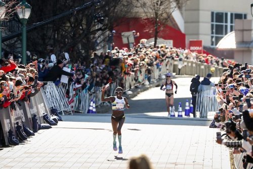Working together, the seasoned 10-time USATF road race champion and the newbie were creating separation, coaxing each other on with occasional conversation. “It was not like we were waxing poetic,” laughs Molly. “She was encouraging me, ‘Come on we can do this.’ And I’d reply, ‘I’m with you, I’m with you.’ That’s about all I could get out because I was really hurting at that point,” explains Seidel. “But having her there and knowing that she was working with me helped me so much. She knew that if we ran together it would make both of us stronger.” Remembering the hard work, the holding on, and her reliance on Tuliamuk’s encouragement in those final miles, Seidel offers this confession: “If she had wanted to, she could have dumped my ass so easily.”
