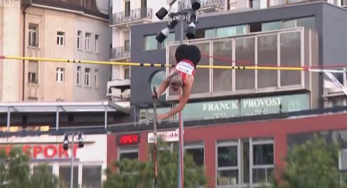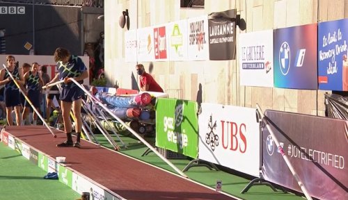 “If you hold it, they will come”, Lausanne Athletissima holds the pole vault, photo by Stuart Weir, via BBC TV
